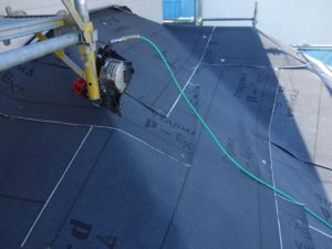 新規屋根材を張り終えたら、下地(タフモック)を新設していきます。