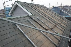 横浜市緑区のS様邸にて、太陽光パネルの脱着と屋根カバー工事を行いました。