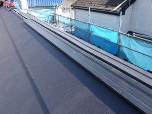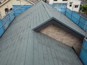 中央部には、換気棟という湿気対策のための板金材を取付けています。