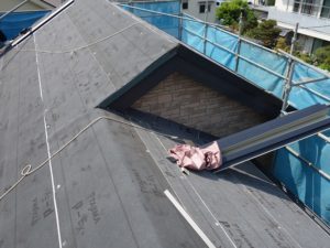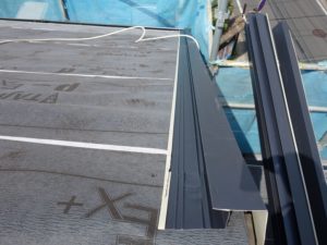 各種役物(板金材)を取付け後、新規屋根材を葺いていきます。