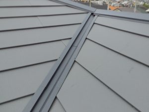 棟板金の接合部にに防水処理を行い、最終確認と清掃を行って完了です。