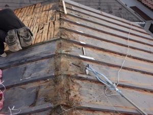 まずは、既存の中途半端に剥がれている屋根材(トタン)を解体撤去していきます。