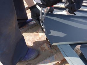 現場で、GL鋼板(ガルバリウム)を加工していきます。