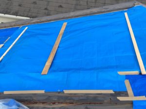 ですが、このままでは雨漏りしてしまうので「ブルーシートで養生」をさせていただきました。